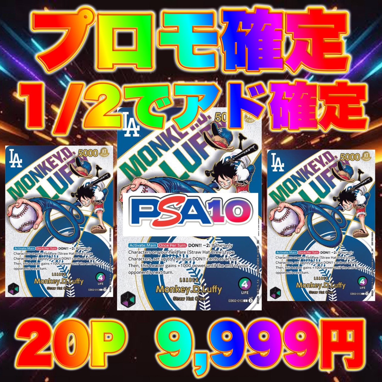 ルフィ ドジャースプロモ PSA10(引換券)