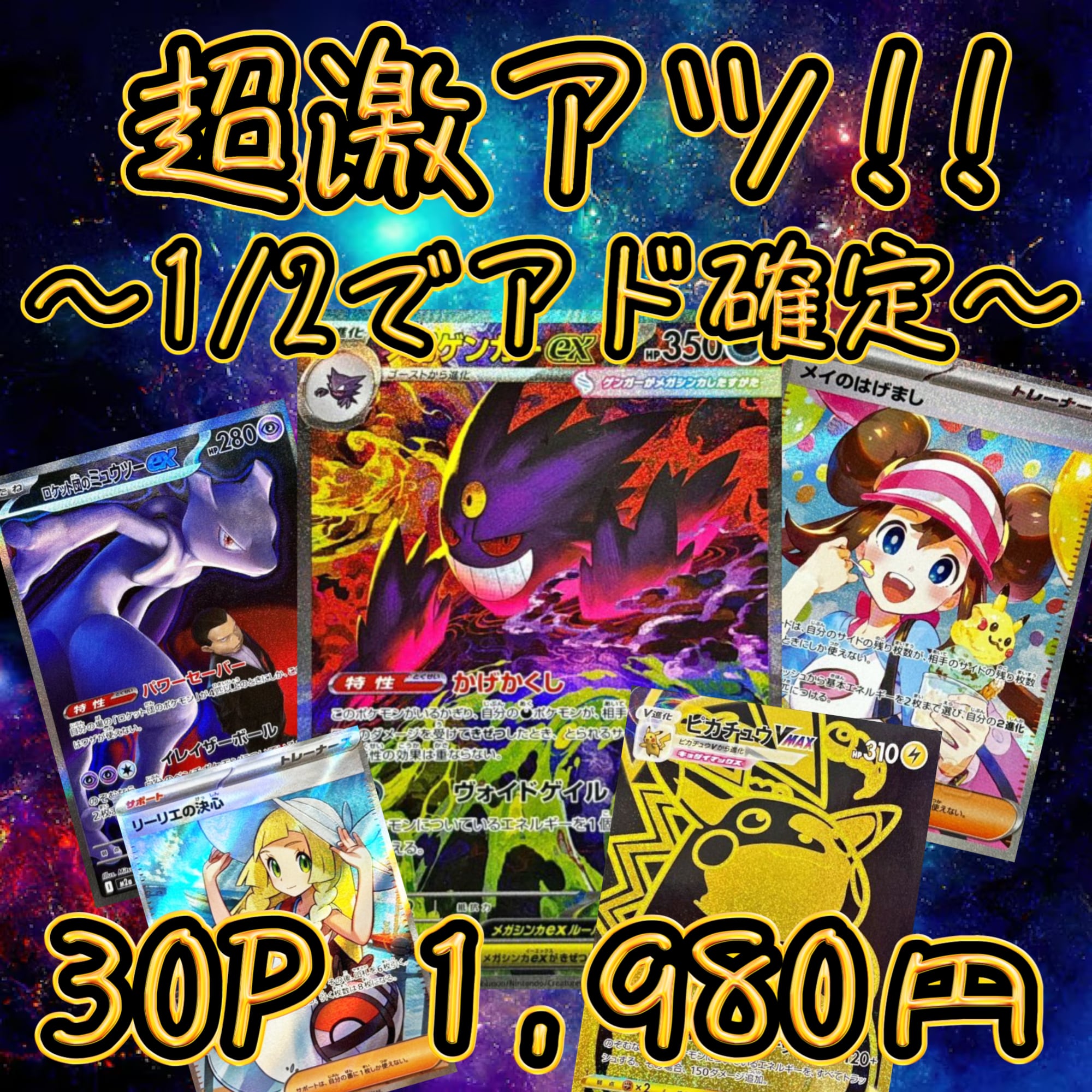 30P ポケカ 超激アツ!! 1/2でアド確定 オリパ